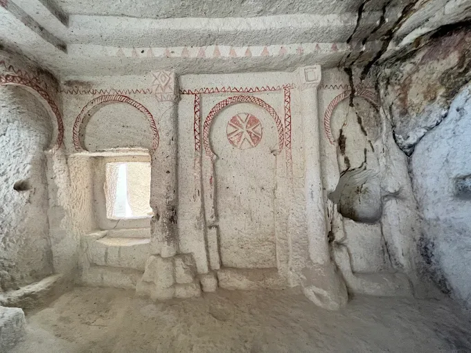 בתוכה נשמרו פרסקאות ביזנטיות צבעוניות מהמאות ה-9–ה-11, המתארות סיפורים תנ"כיים. -